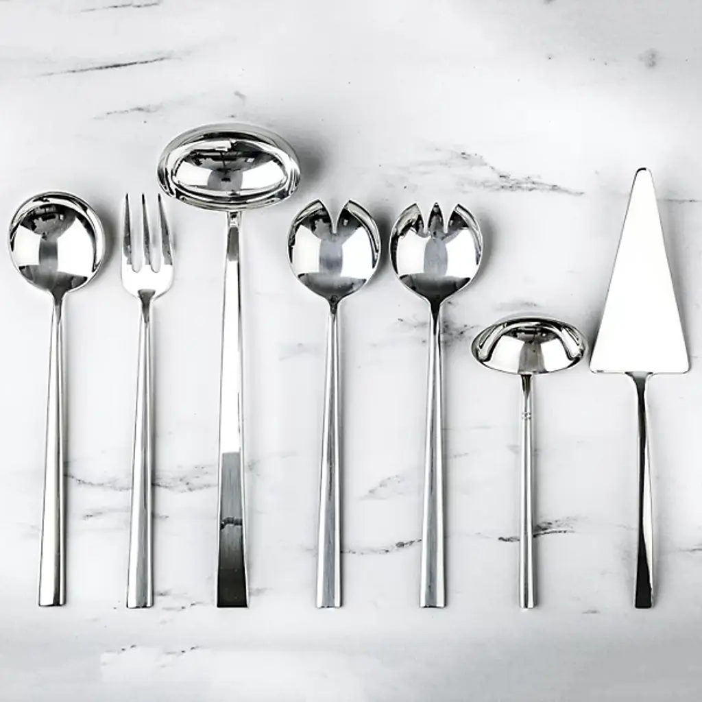 The Movida 2-Piece Salad Server Set, from Mepra is a versatile and elegant addition to your dining collection. Crafted from luxurious 18/10 stainless steel, this set seamlessly blends contemporary design with practicality. Made in Italy, it offers a refined, stylish look that elevates any dining experience. The set is dishwasher safe, ensuring easy maintenance and convenience for everyday use. Combining both luxury and functionality, the Movida Salad Serving Set is the perfect choice for those who appreciate high-quality, beautifully crafted tableware.