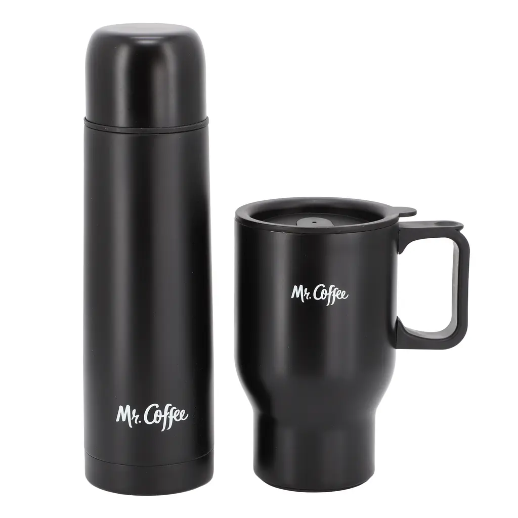 Mr. Coffee Javelin 2 Piece Thermal Bottle And Travel Mug Set With Attachment Cup - Black