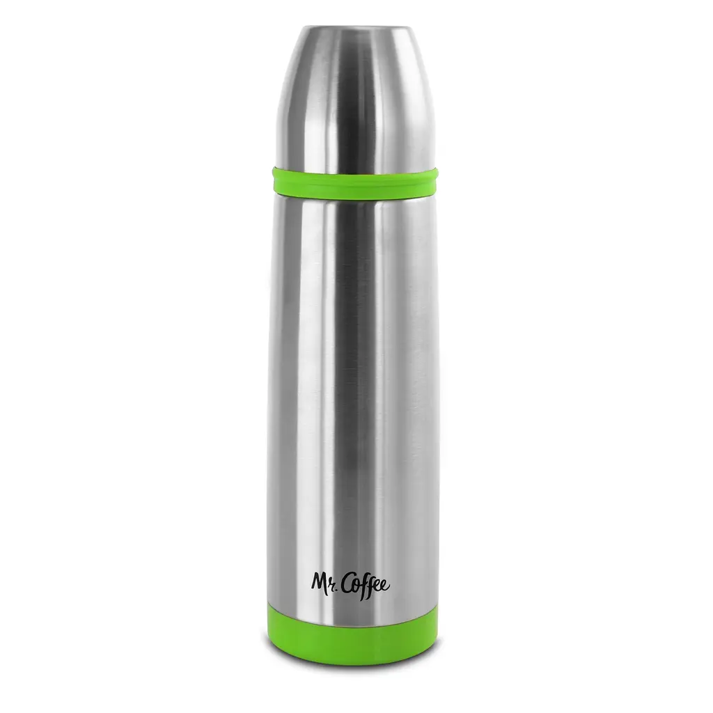 Specification:Description: The Mr. Coffee Javelin 2 Piece Thermal Bottle and Travel Mug Set in Black / Silver / White / Emerald-Green offers the ultimate combination of convenience, functionality, and style for those who are always on the move. This set includes a thermal bottle with a secure sealing lid and a compact attachment cup for easy pouring and sipping, eliminating the risk of spills. The travel mug features a practical slide-open lid for quick access to your beverage, making it ideal for busy mornings or road trips. Both items are designed with a slim base that fits comfortably in most standard cup holders, ensuring easy portability whether you're commuting to work or traveling. Crafted from durable double-wall vacuum insulated stainless steel, the Mr. Coffee Javelin set is built to maintain your beverages at the perfect temperature for hours. Enjoy a piping hot cup of coffee on chilly mornings or refreshing cold drinks on warmer days without worrying about temperature changes. The sleek, modern black design adds a touch of sophistication, making this set not just a practical addition to your daily routine, but a stylish accessory as well. Perfect for anyone who enjoys their favorite drinks on the go, this thermal bottle and travel mug set enhances your beverage experience with its thoughtful design and long-lasting performance.