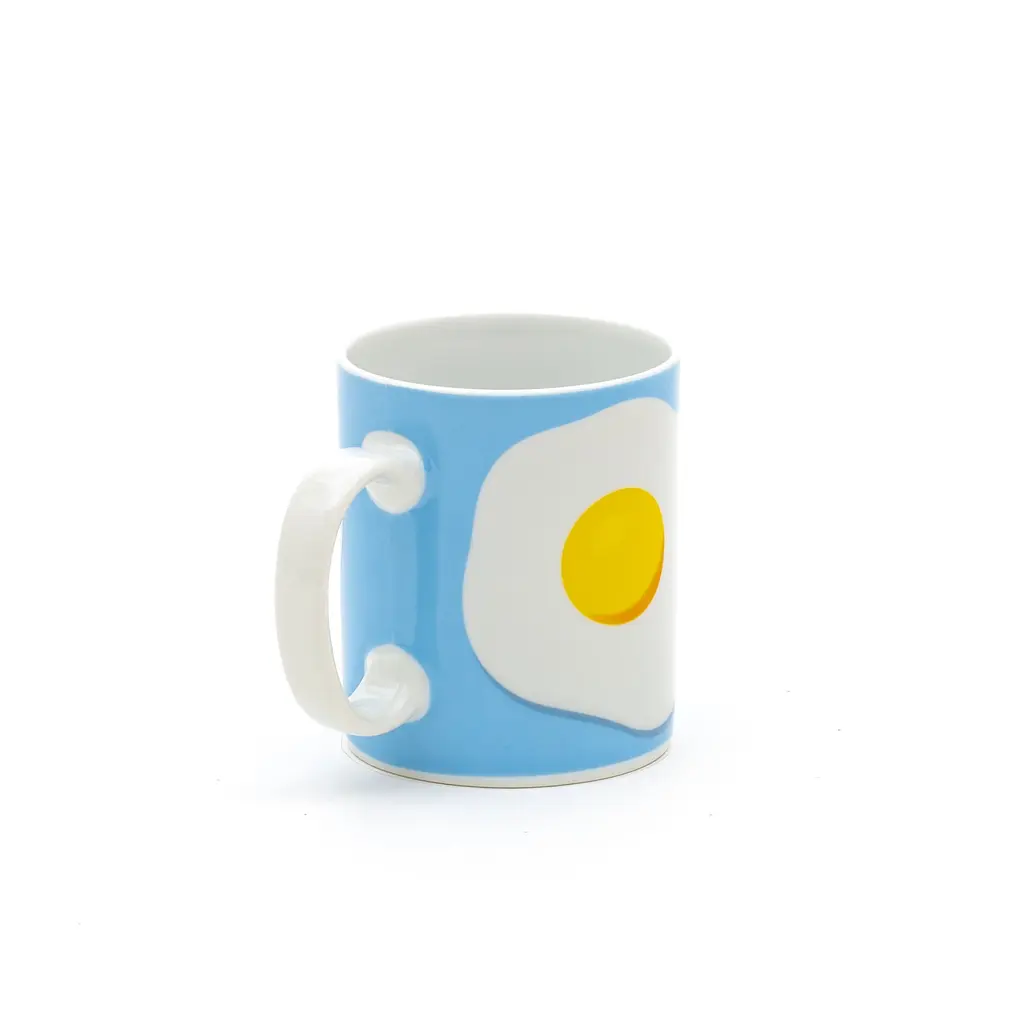 Rise and shine with the sunny-side-up Egg mug. A fun design from the Blow line designed by Studio Job for Seletti, this bright mug is perfect for your morning coffee or tea. The vibrant blue backdrop adds contrast to the white and yellow egg print, making sure that it pops out from afar. Ideal for home or the office, the mug is made of durable and high-quality porcelain. It’s easy to clean and crafted to last, so you can make your coffee breaks a bit brighter for years to come. Complement this design with the other fun mugs from the collection.