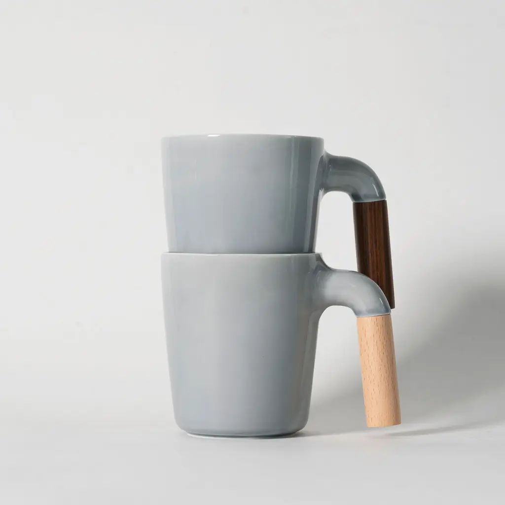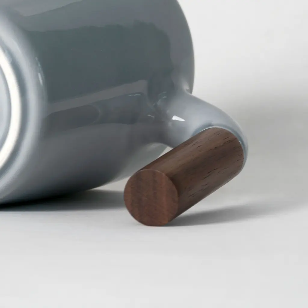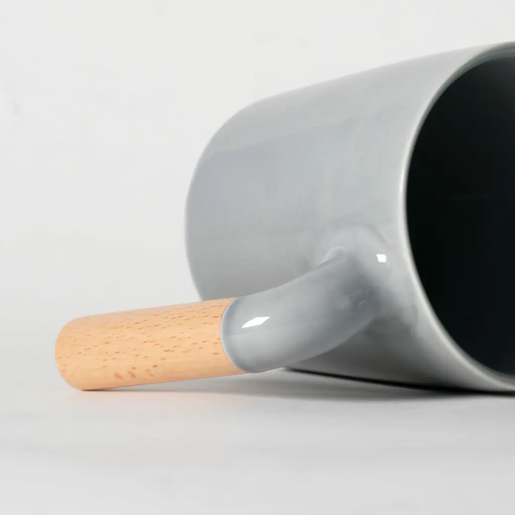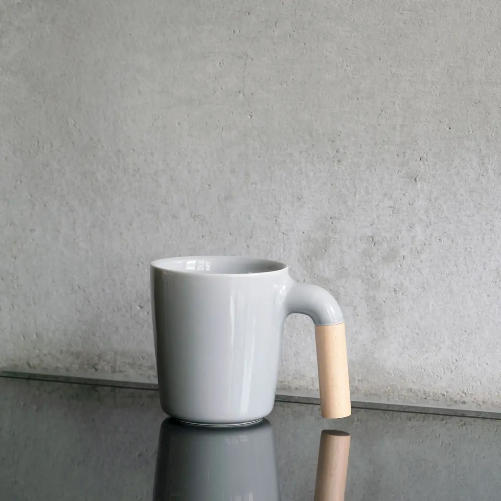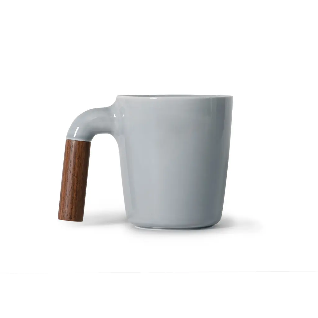 A sleek interpretation of the classic Mugr mug from HMM, Mugr Cloud features the same minimalist design, but in a lustrous version. Similarly to the hugely popular Mugr, the Cloud features an elegantly rounded and tapered body paired with a cylindrical wood handle. Made from ceramic and fired at 1290-degree Celsius, this mug has enhanced thermal shock stability as well as minimal water absorption. The glaze finish in a light gray hue gives a stylish accent to the clean design. The shiny surface also makes the mug easy to clean. Mugr Cloud comes with a light beech wood or a darker walnut wood handle. A perfect choice to infuse your coffee and tea drinking rituals with a Scandinavian-style flavor.