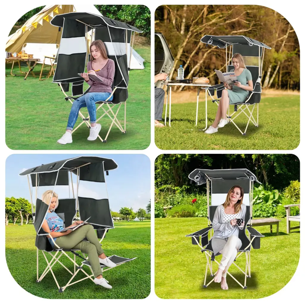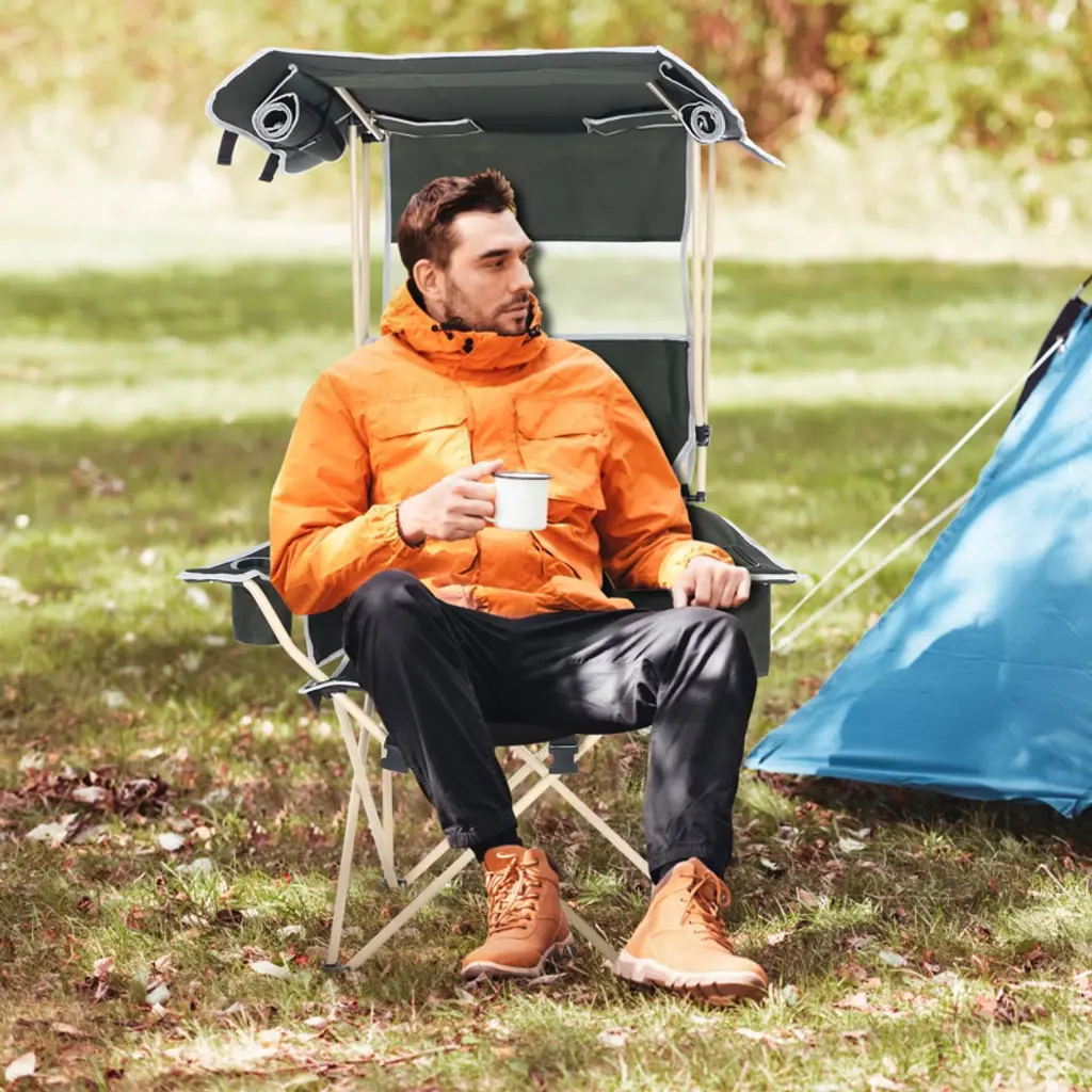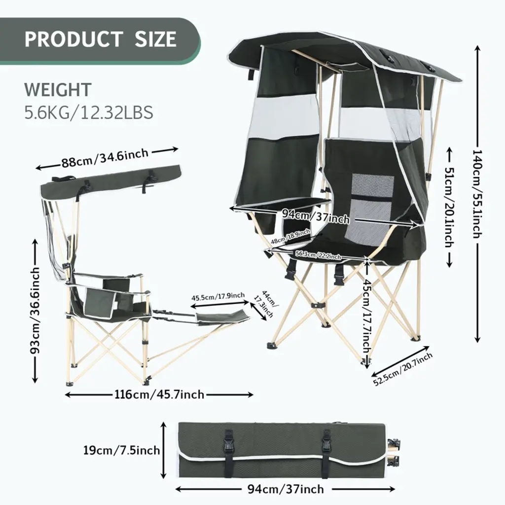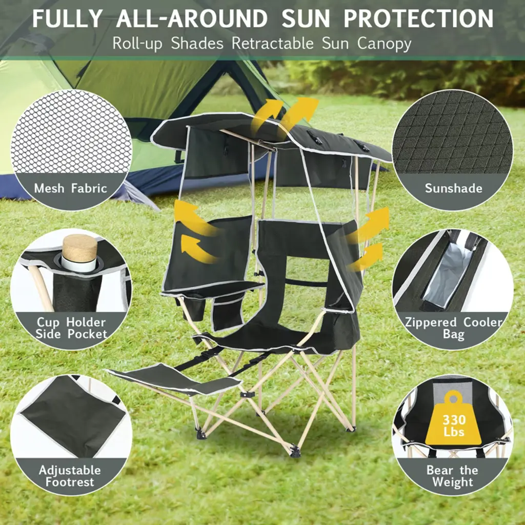 Muke Camping Chair With Canopy, Removable Footrest, Cooler Bag & Cup Holder, Shade Seat For Beach, Fishing, Sports & Camping (1 Pack)