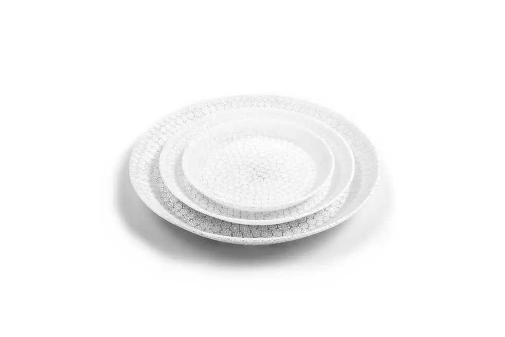 Designed by the Italo-Japanese couple Shiina+Nardi design, this plate is manufactured in Murano (Venice) by Ercole Moretti for Hands on design, one of the last artisan dealing with this rare technique. Bouquet is the expression of a modern shape for an ancient technique dating back to the ancient Romans and still living in Murano murrina glass. In ‘Bouquet’ plates the essential monochrome and elegant design, remind of fabrics and exquisite decor of ancient Japan.