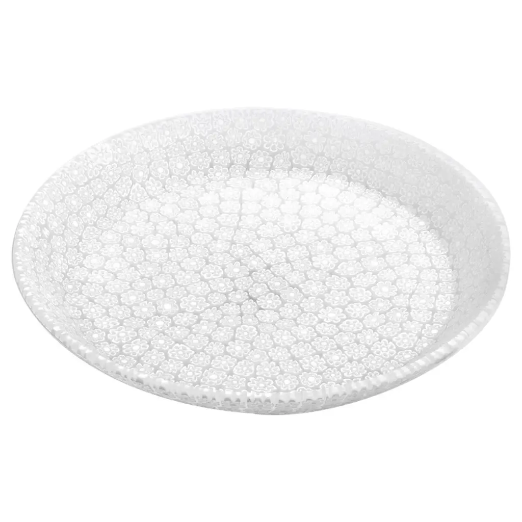 Murano Murrine Glass Plate 'Bouquet L White' Millefiori Technique