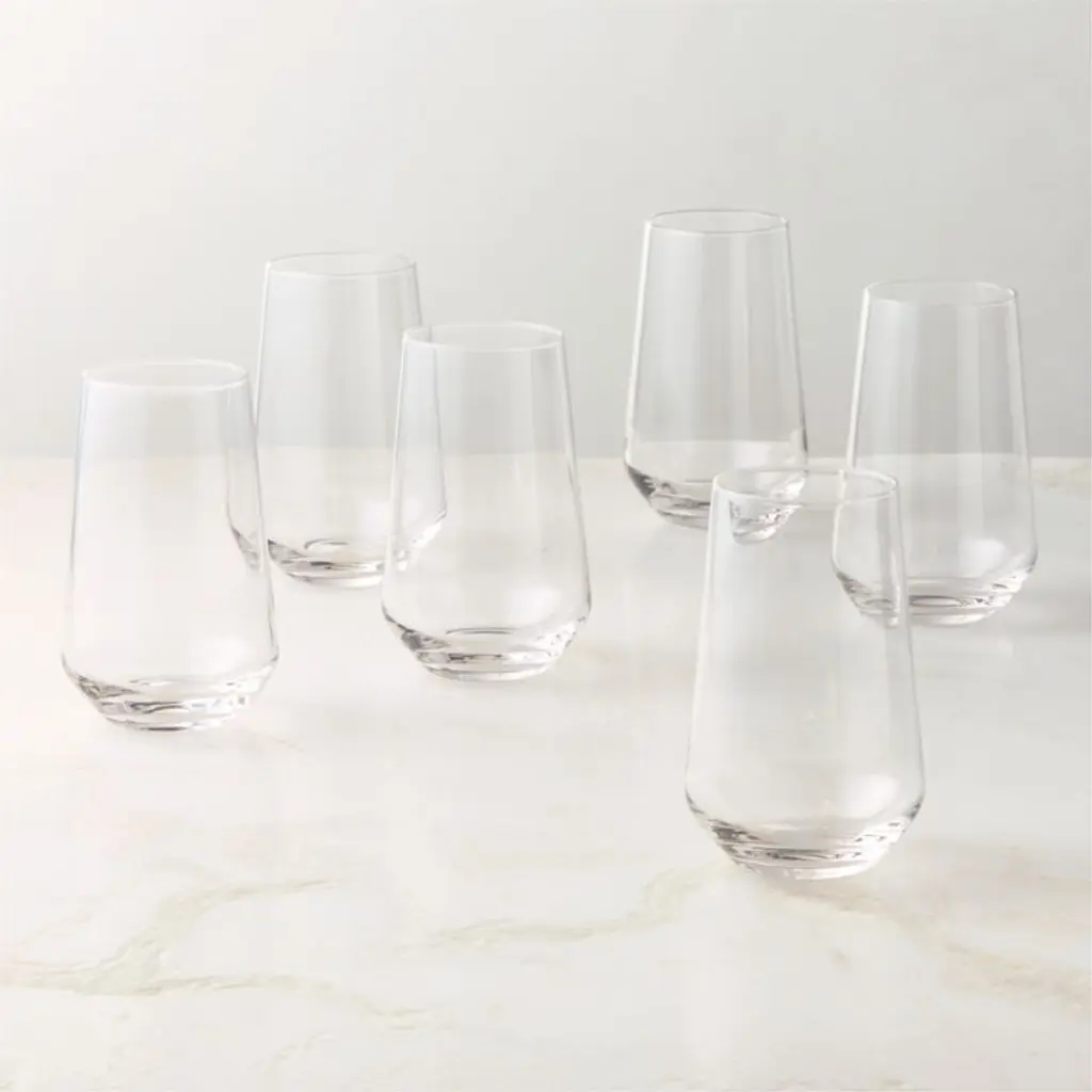 Handblown by skilled artisans, our best-selling Muse highball glass brings modern lines to cocktail hour. The crystalline glass features a flared base for a fresh take on the classic silhouette. Pair this set of six with the other glasses in the Muse collection. CB2 exclusive.