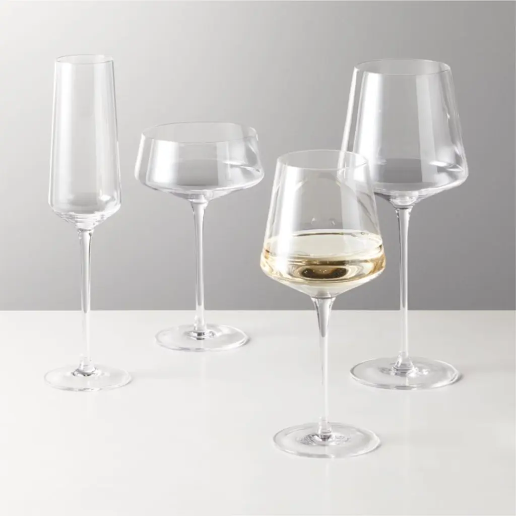 Handmade by skilled artisans, our best-selling Muse red wine glasses bring modern lines to a classic silhouette. The crystalline glasses feature a long, delicate stem and tapered bowl to promote aeration and enhance the flavor of the wine. Pair with the other glasses in the Muse stemware collection. CB2 exclusive.