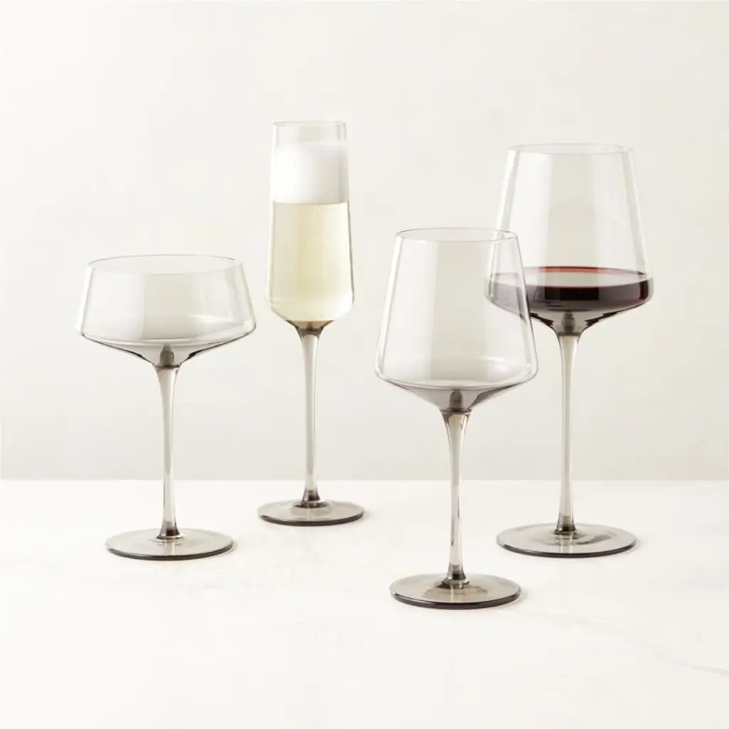 Handmade by skilled artisans, our best-selling Muse white wine glass brings modern lines and an unexpected smoke color to a classic silhouette. The smoked crystalline glass features a long, delicate stem and tapered bowl to enhance the flavor of the wine. Pair with the other glasses in the Muse stemware collection. CB2 exclusive.