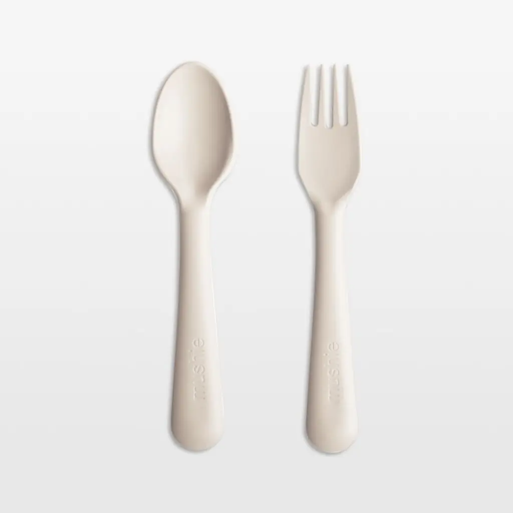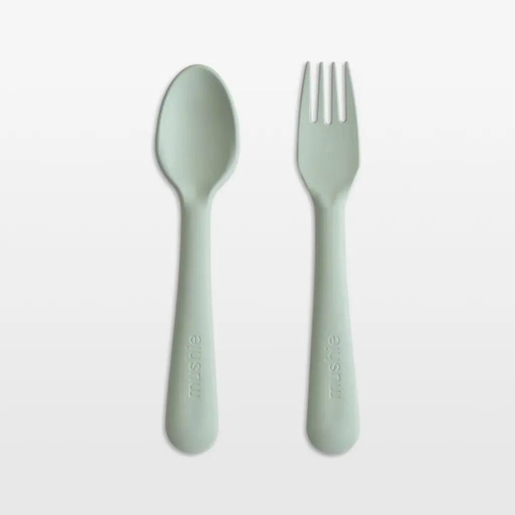 From baby's first foods to messy toddler meals, our Mushie fork and spoon set is a mealtime must-have. The plastic set is simple, elegant and easy for little hands to hold as they explore the wide world of dining. In a muted shade of blush pink, the utensils coordinate with other Mushie cups, plates and bowls (sold separately). Even better, they're dishwasher-safe to make cleanup a snap.