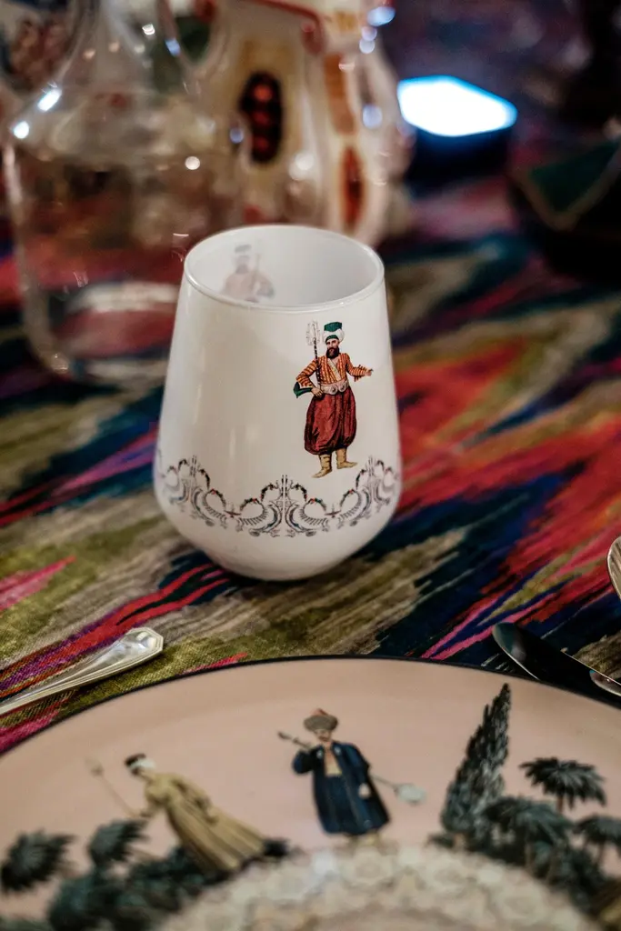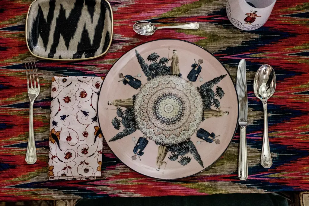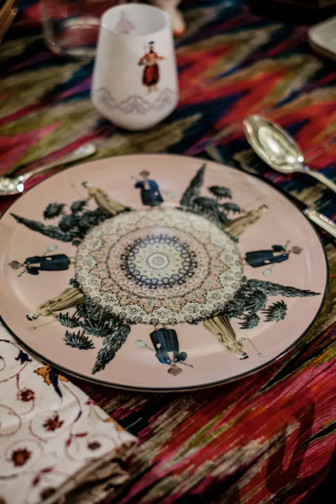 Contemporary dinner plate 'Musicians' designed by Vito Nesta for Les-Ottomans, a magical trip in an ottoman world made of exotic animals and characters such as dancers, soldiers and musicians. A collection of 12 pieces that will bring colors and redefine your art de la table.Made in ItalyAlso available in set.