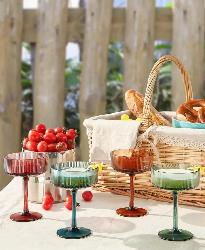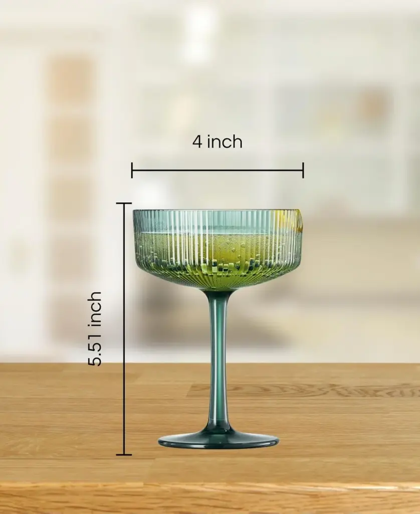 Elegant vintage design with a ribbed ripple texture and classic coupe silhouette, these glasses embody the timeless sophistication of Art Deco style.