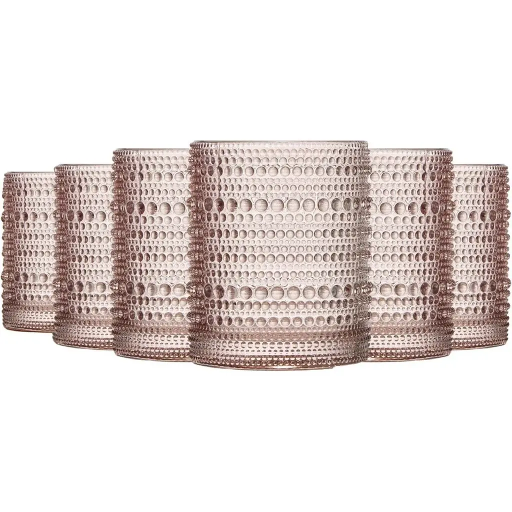 Elevate your drinkware with these vintage-inspired hobnail tumblers. Available in a variety of stunning colors, these bubble-designed glasses bring character and texture to your table. Each set offers a nostalgic charm, perfect for cocktails, water, or refreshing beverages. Crafted with quality and style, these tumblers add a vibrant touch to any occasion.