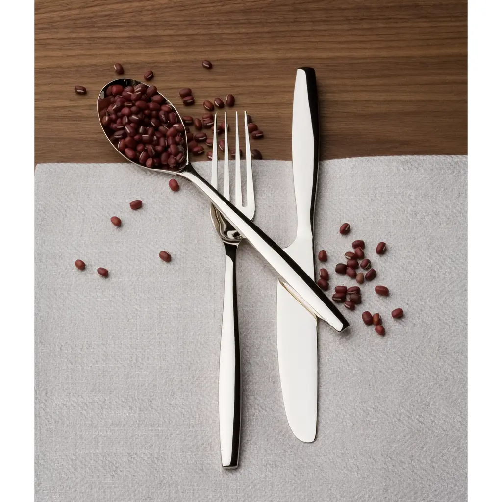 Handsome and optimistic, Aidans modern tailoring make it a perfect companion for almost any dinnerware. Forged of 18/10 Stainless Steel and dishwasher friendly.