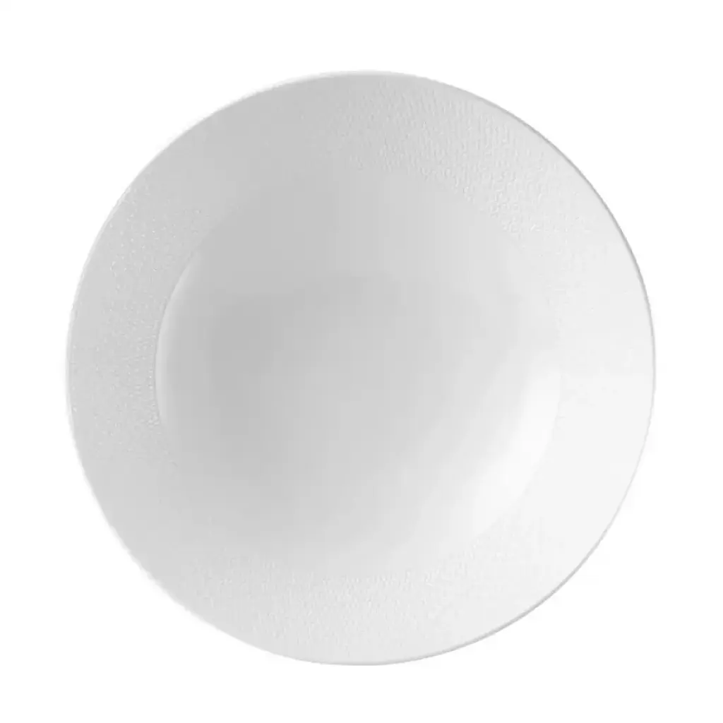 This eclectic service with its beautifully-detailed basket-style relief is an "everyday" white china for those who appreciate the unique. Bone china.