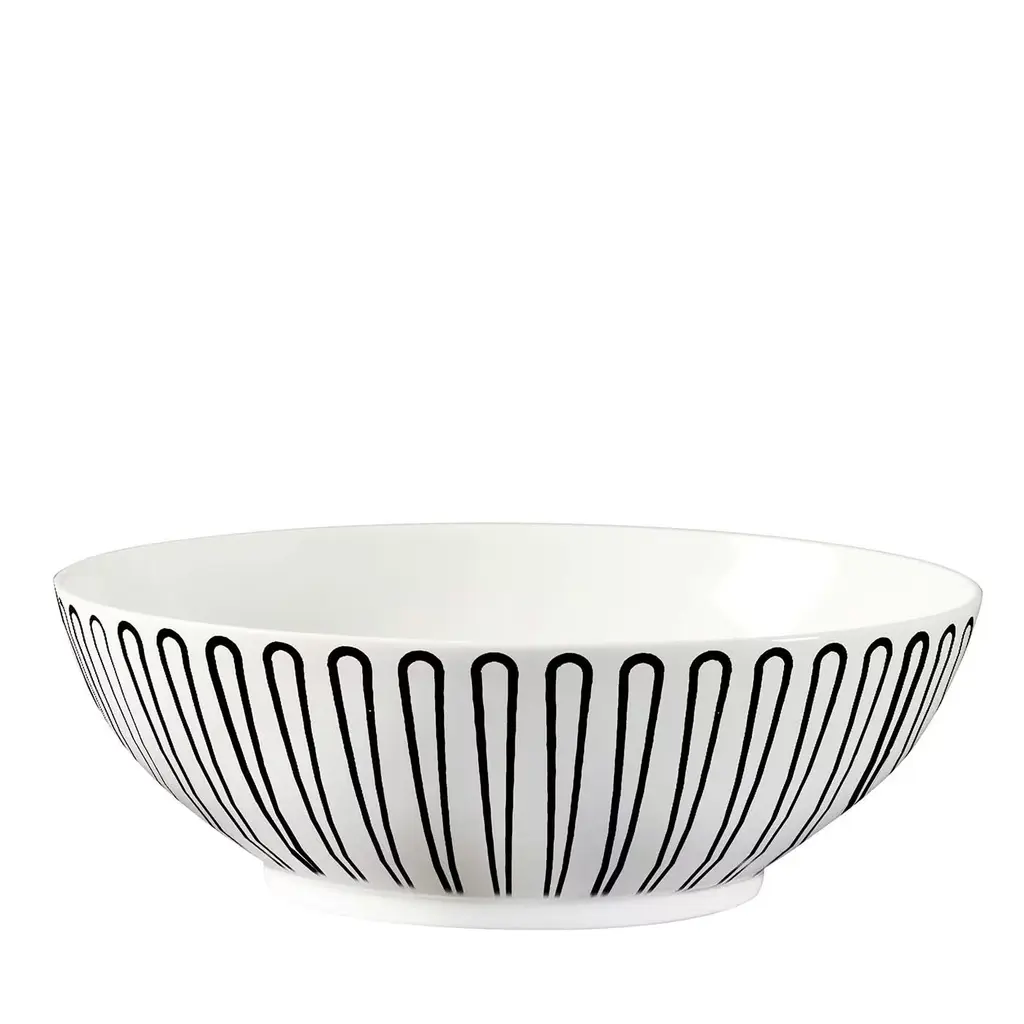 The Nastri Salad Bowl from Missoni adds a playful presence to any meal with its flowing ribbon-like pattern set against a soft, pale interior. Its deep design with a beveled edge makes it perfect for salads, rice, and other bowl-based dishes, blending practicality with modern flair. Made from durable bone china and dishwasher safe, it offers both everyday convenience and artistic charm.