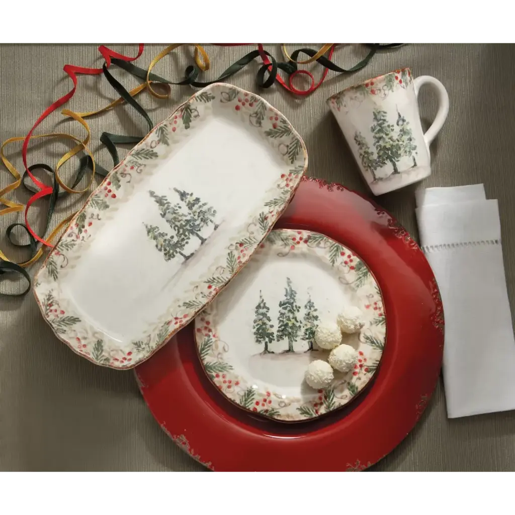 Natale is the perfect collection to entertain through the winter season. Berries and pine boughs surround the snowy evergreens. Our Natale Plate is perfect for serving yummy meals. Hand made in Italy. Founded in 1997 by Ann Skidmore, Arte Italica is a story of one woman's passion for Italian history, culture, art, and vintage pewter. Today, Arte Italica is one of the leading importers of European tabletop and home accessories products in the United States. Every piece is handmade and designed so that they can easily be mixed and matched to create a timeless, classic, and effortless look.