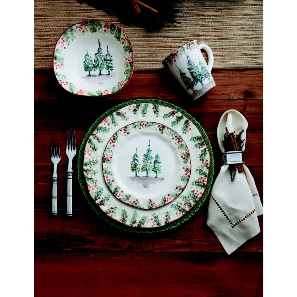 Natale is the perfect collection to entertain through the winter season. Berries and pine boughs surround the snowy evergreens. Our Natale Small Oval Tray is perfect for serving small treats and savory snacks. This tray compliments the salt and pepper shakers and holds them nicely on the table or countertop! Hand made in Italy.Dishwasher safe on the low heat setting. Microwavable, may get hot. Founded in 1997 by Ann Skidmore, Arte Italica is a story of one woman's passion for Italian history, culture, art, and vintage pewter. Today, Arte Italica is one of the leading importers of European tabletop and home accessories products in the United States. Every piece is handmade and designed so that they can easily be mixed and matched to create a timeless, classic, and effortless look.