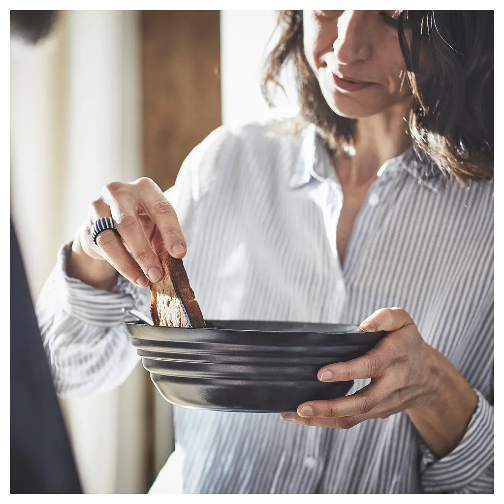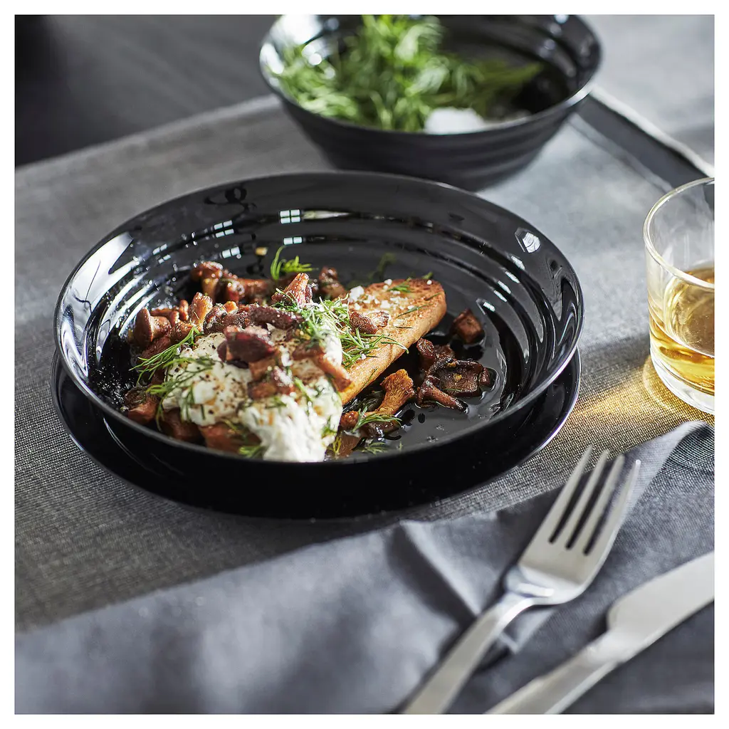 NÄTBARB Deep plate/bowl - black 7 ½ ". Ideal for all everyday meals since all items in the series are lightweight, easy to clean in a dishwasher and stackable to save space when not in use. The glossy opaque surface adds an elegant touch to any room and table setting.