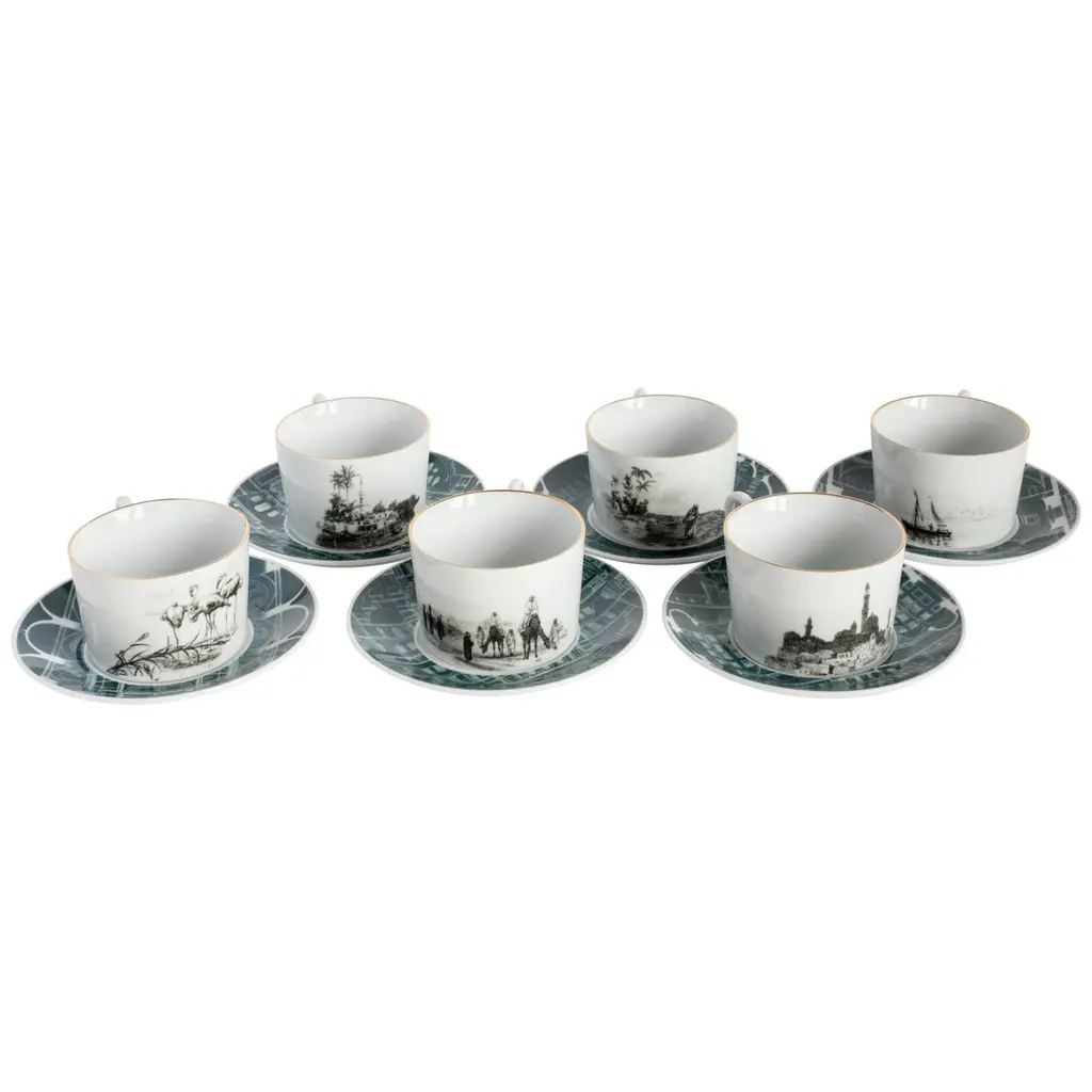 Natsumi, Coffee Set With Six Contemporary Porcelains With Decorative Design