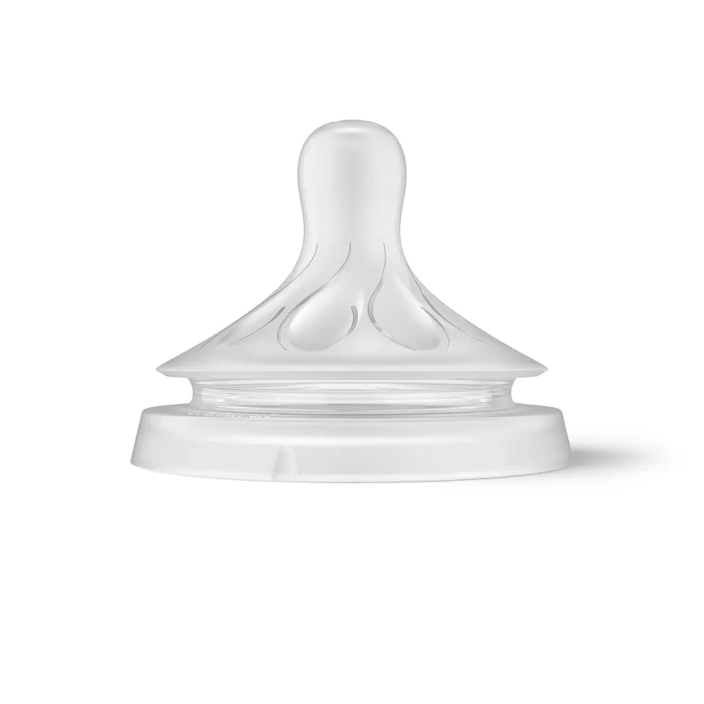 Philips Avent Natural bottle with the Natural Response nipple lets baby control the pace of the milk, like they do when breastfeeding. The nipples' unique opening and tip only releases milk when your baby actively drinks. When pausing to swallow and breathe no milk flows. Baby can drink, swallow, and breathe using their natural rhythm, just like they do when breastfeeding. Easily combine breast and bottle feeding with a wide breast-shaped nipple with a soft feel that mimics the shape and feel of a breast; plus baby controlling the flow of milk like they do when breastfeeding. The nipple has a no-drip design which helps prevent lost milk from the tip. An anti-colic valve integrated into the nipple is designed to reduce colic and discomfort by sending air away from your baby's tummy. The ergonomic shape makes it comfortable for parents to hold and easy for small fingers to grasp. Assembly is simple with only a few parts and the wide bottle neck makes filling and cleaning easy. The Natural bottle is made from polypropylene, a BPA free material, and works with all nipples and caps from the Natural line. The Natural response nipples come in flow rates 1-5, to keep up with your baby's growth. Includes: 3 9oz Blue Natural bottles with Natural Response nipples, flow 3. Natural Bottle with Natural Response nipple Baby controls the pace, just like breastfeeding.