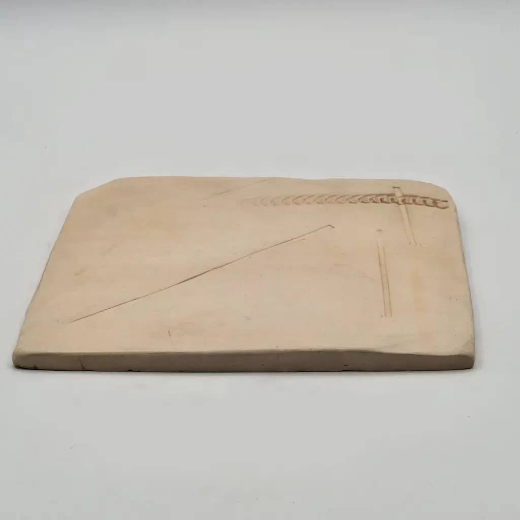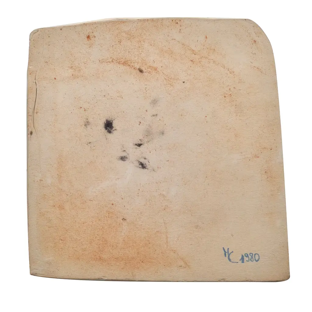 A celebration of terracotta in its natural splendor, this magnificent decorative plate will infuse any modern interior with a delicate and intimate charm. Handmade of single-firing clay, it flaunts an irregular four-sided shape graced with graphic decorations of subtle geometric forms. This clean and elegant piece is signed by artist Maurizia Carantani.