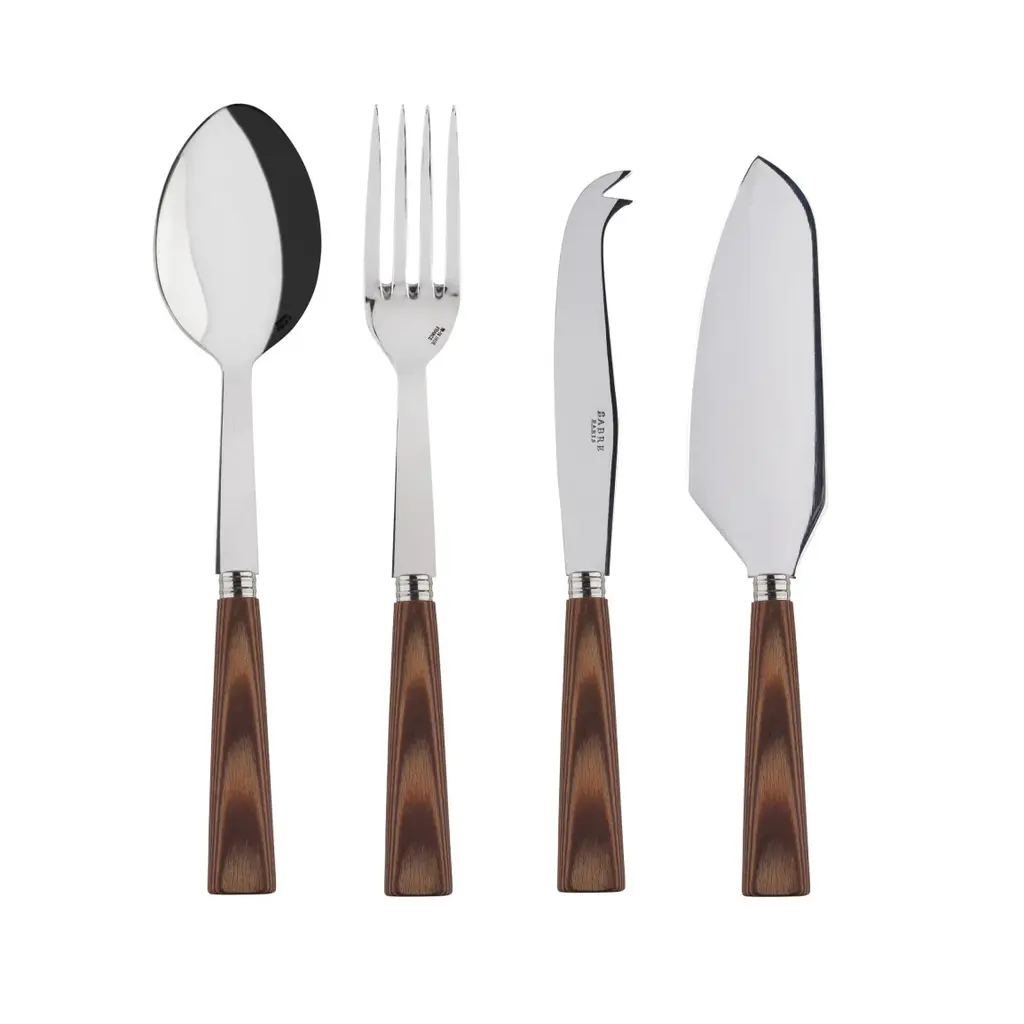 An essential complement to your cutlery, the Nature 4-Piece Must-Have Serving Set from Sabre Paris is a versatile and stylish solution for all your entertaining needs. This beautiful set features the same sleek silhouette as the iconic Icône collection, but with handles crafted to resemble the warm, organic look of faux horn or light wood. The collection includes a serving fork, serving spoon, cheese knife, and pie server, providing everything you need for effortless serving. A fusion of contemporary design and natural elegance, it’s a sophisticated and inviting ensemble for any occasion. Highlights: