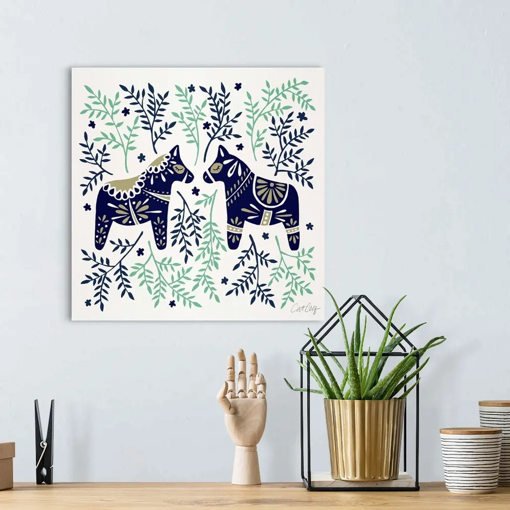 Navy Mint Swedish Dala Horses wall art for home and office decor. Discover canvas art prints, photos, mural, big canvas art and framed wall art in GreatBigCanvas.com's varied collections.