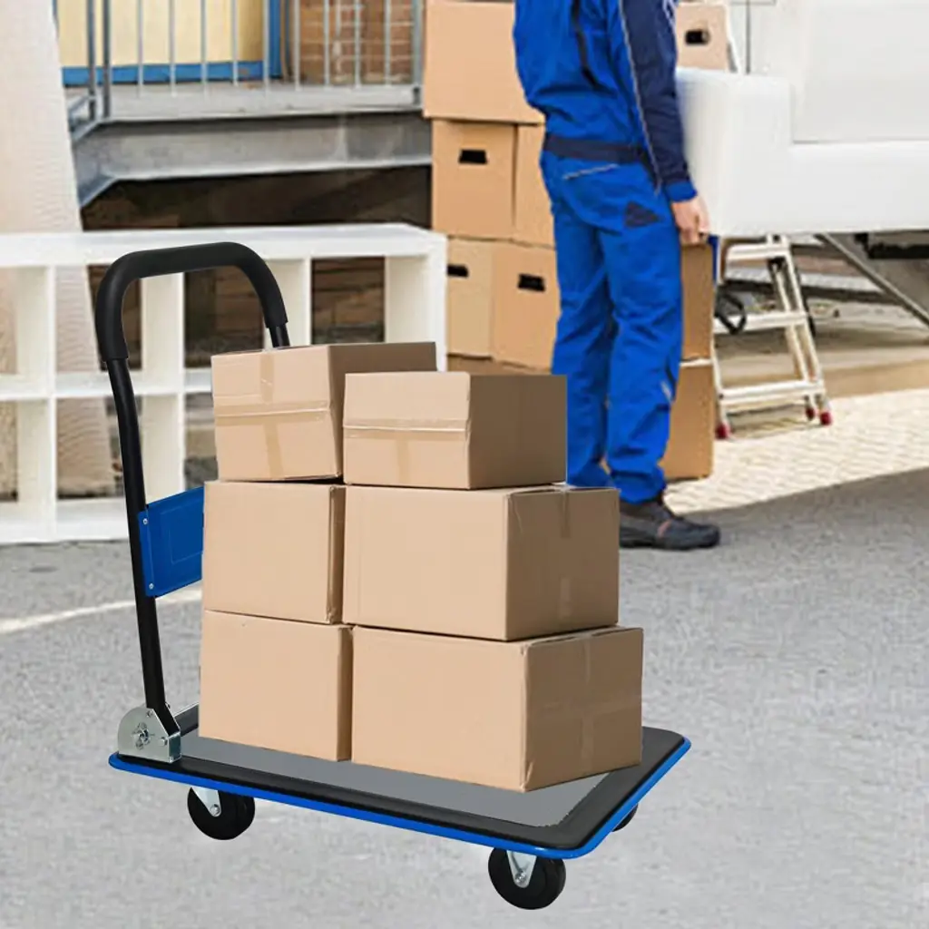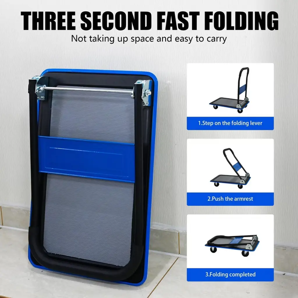 Naysaye Foldable Platform Dolly Heavy Duty Flatbed Cart With Swivel Wheels And Anti Slip Plate For Loading And Storage, Blue, 28.74"*18.5"*32.68"
