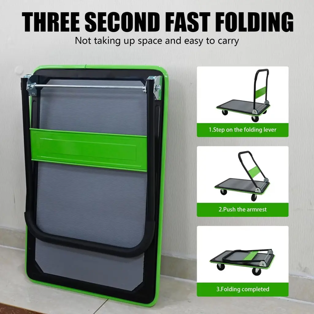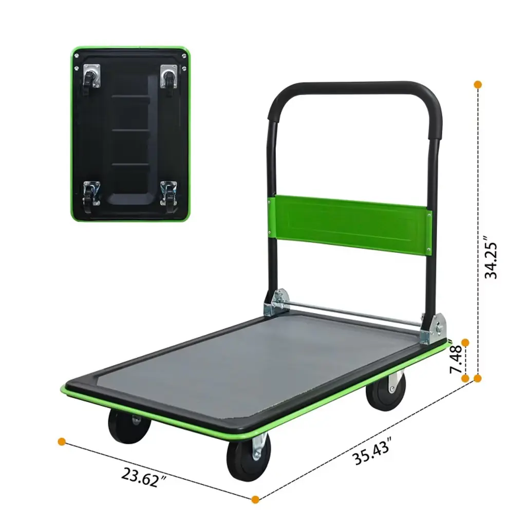 Naysaye Foldable Platform Dolly Heavy Duty Flatbed Cart With Swivel Wheels And Anti Slip Plate For Loading And Storage, Green, 35.43"*23.62"*34.25"