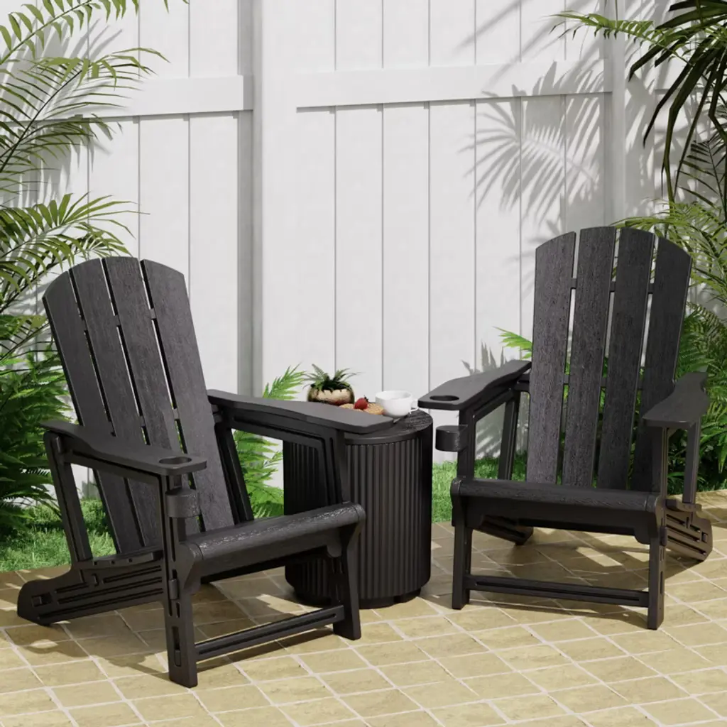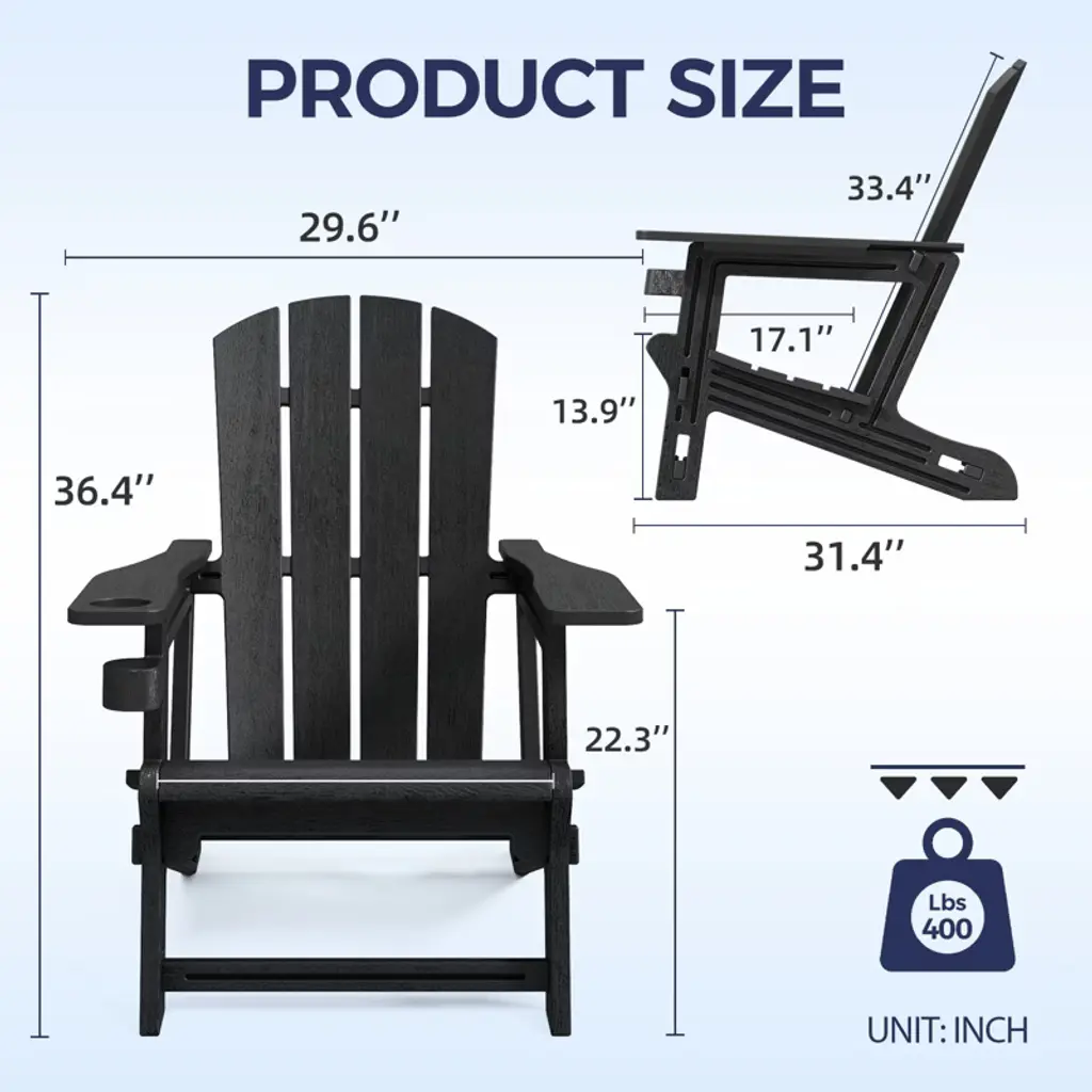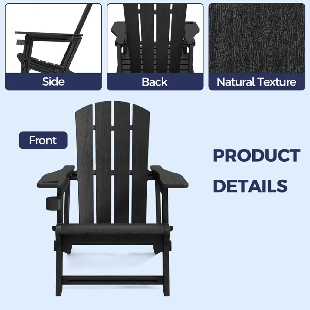 Naysaye Patio Chaise Lounge Adirondack Chair Set With Cup Holder Foldable Design For Outdoor Use, Black, 22.3"*30"*36.4"