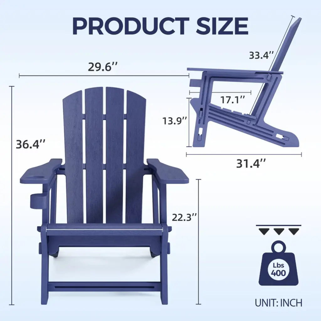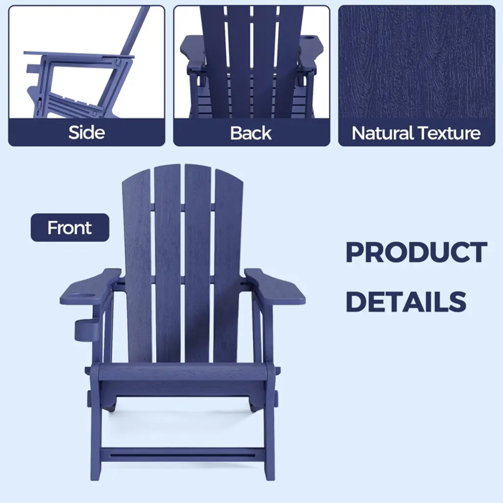 Naysaye Patio Chaise Lounge Adirondack Chair With Cup Holder Foldable Design For Relaxing Outdoors, Dark Blue, 22.3"*30"*36.4"