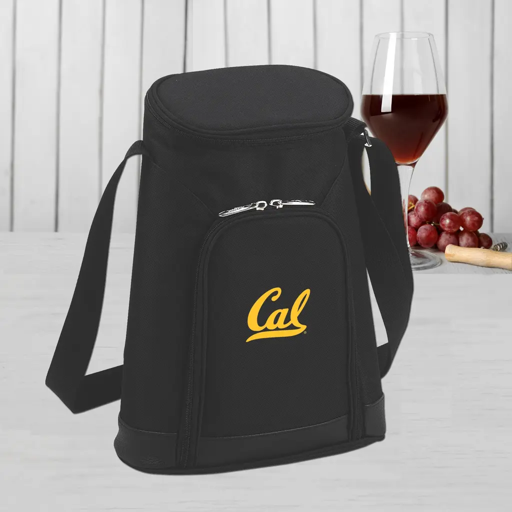Ncaa California Berkeley University Golden Bears Stylish 2 Bottle Insulated Wine Tote Bag With Cheese Board, Knife And Corkscrew - Black