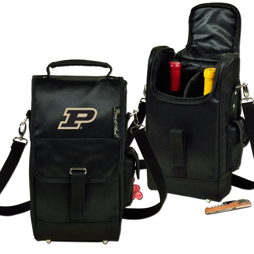 Ncaa Purdue Boilermakers Two Bottle Wine Tote W/corkscrew - Black