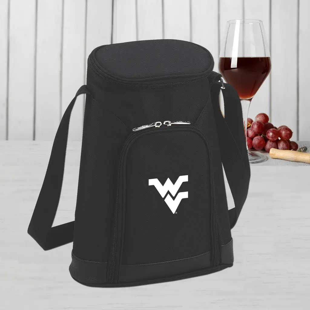 Ncaa West Virgina University Mountaineers Stylish 2 Bottle Insulated Wine Tote Bag With Cheese Board, Knife And Corkscrew - Black