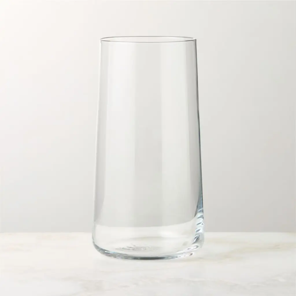 A clear choice for everyday glassware. Round, micro-thin cooler with tapered sham holds drinks with cool simplicity. Pairs with the Neat tasting and double old-fashioned glasses. Priced right for multiples. CB2 exclusive.