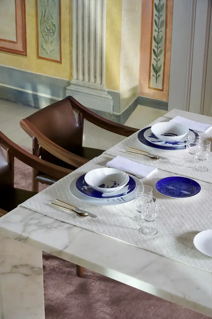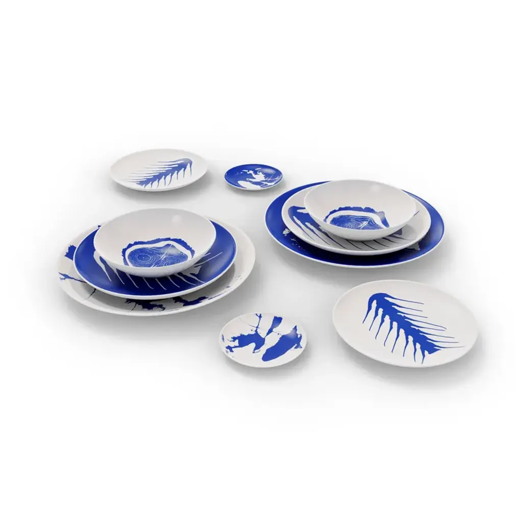 Set of 2 soup plates - Neige.Le Monde de Charlotte Perriand: a new tableware collection inspired by her passion for nature: Cassina continues its collaboration with Ginori 1735 and presents the finest porcelain dinner set inspired by the photography of Charlotte Perriand. Hand decorated and characterised by patterns that combine the colours blue and white, this striking set of plates is the perfect proposal to embellish any dinner table. The Le Monde de Charlotte Perriand collection includes a service plate, a dinner plate, a bowl and a side/dessert plate, presented in a set of two, with three different decorations that can be mixed and matched. To guarantee authenticity, each piece is marked with the Cassina and Ginori 1735 logos.