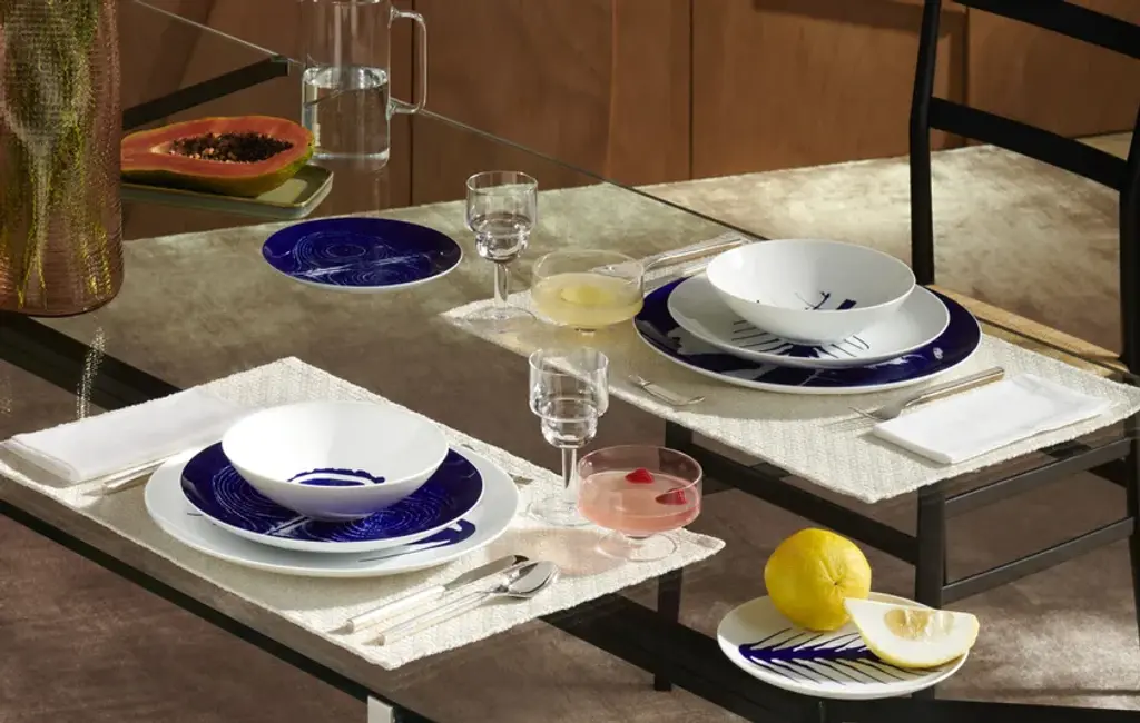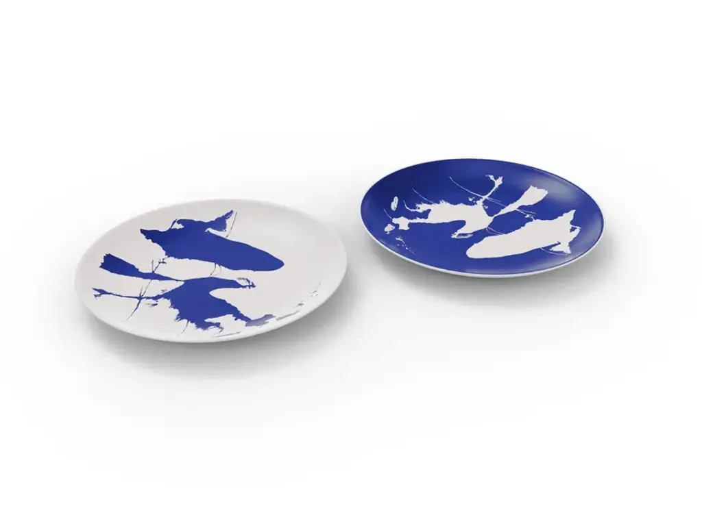 Set of 2 placeholder plates - Neige.Le Monde de Charlotte Perriand: a new tableware collection inspired by her passion for nature: Cassina continues its collaboration with Ginori 1735 and presents the finest porcelain dinner set inspired by the photography of Charlotte Perriand. Hand decorated and characterised by patterns that combine the colours blue and white, this striking set of plates is the perfect proposal to embellish any dinner table. The Le Monde de Charlotte Perriand collection includes a service plate, a dinner plate, a bowl and a side/dessert plate, presented in a set of two, with three different decorations that can be mixed and matched. To guarantee authenticity, each piece is marked with the Cassina and Ginori 1735 logos.