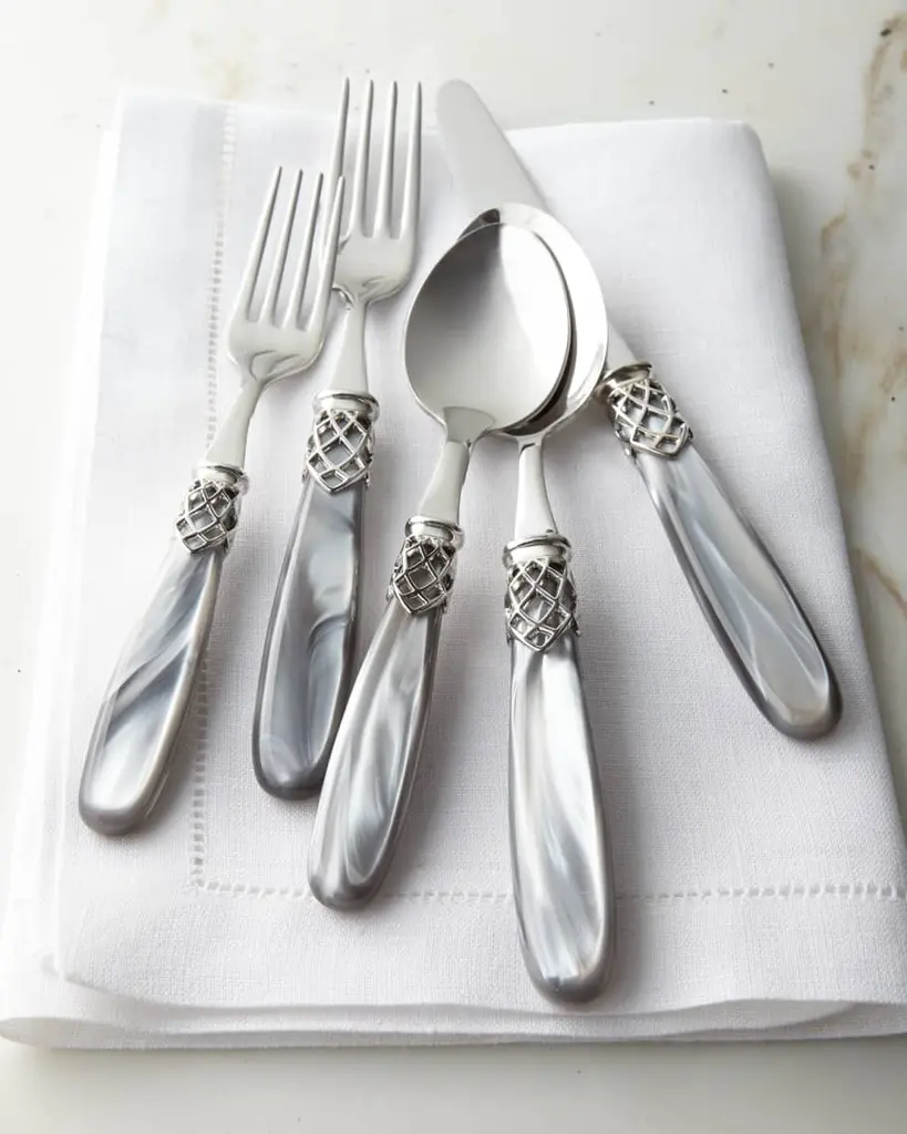 Neiman Marcus French Shine 20-Piece Flatware Service, Gray Pearl | Horchow