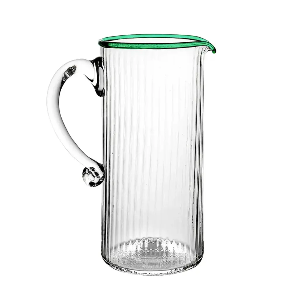 A statement piece for any tastemaker’s collection, this stunning pitcher brings the party wherever it goes, from weekend brunch to summer bash to cocktail hour. Hand crafted by our master artisans, each piece is mouth blown using three intricate techniques to create its shimmering optic effect, jewelry-like thread detailing, and colorful rim. Perfectly chic for everything from water to wine to flowers. Gift boxed. Based in Connecticut, Juliska is committed to bringing elegant European design into our modern homes. Since its founding in 2001, when David and Capucine Gooding began by working with artisans outside of Prague to reproduce antique Bohemian glass pieces, every piece from Juliska has shared a rich heritage spanning six centuries of European design. Juliska's creations are timeless, romantic and effortlessly chic.