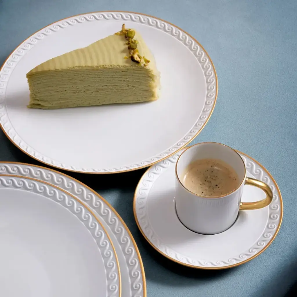Inspired by the timeless beauty of the sea, this neo-classical motif is meticulously handcrafted from fine porcelain, sculpted in bisque to echo the gentle waves of the Mediterranean. Prior to founding L’Objet in 2004, Israeli-born Elad Yifrach was a successful designer in Beverly Hills. He was creating beautiful interiors, but he was frustrated by the limited options available in home accessories, so he set out to create something better. L’Objet’s collections are diverse, but they are almost always inspired by nature and architecture. Many of his exquisite serving pieces rest in a base of hand-crafted gold foliage, other pieces feature intricate design and beadwork, and some of the most striking objects actually look like miniature buildings. And despite the lux feel, much of the line is practical with just a touch of whimsy.