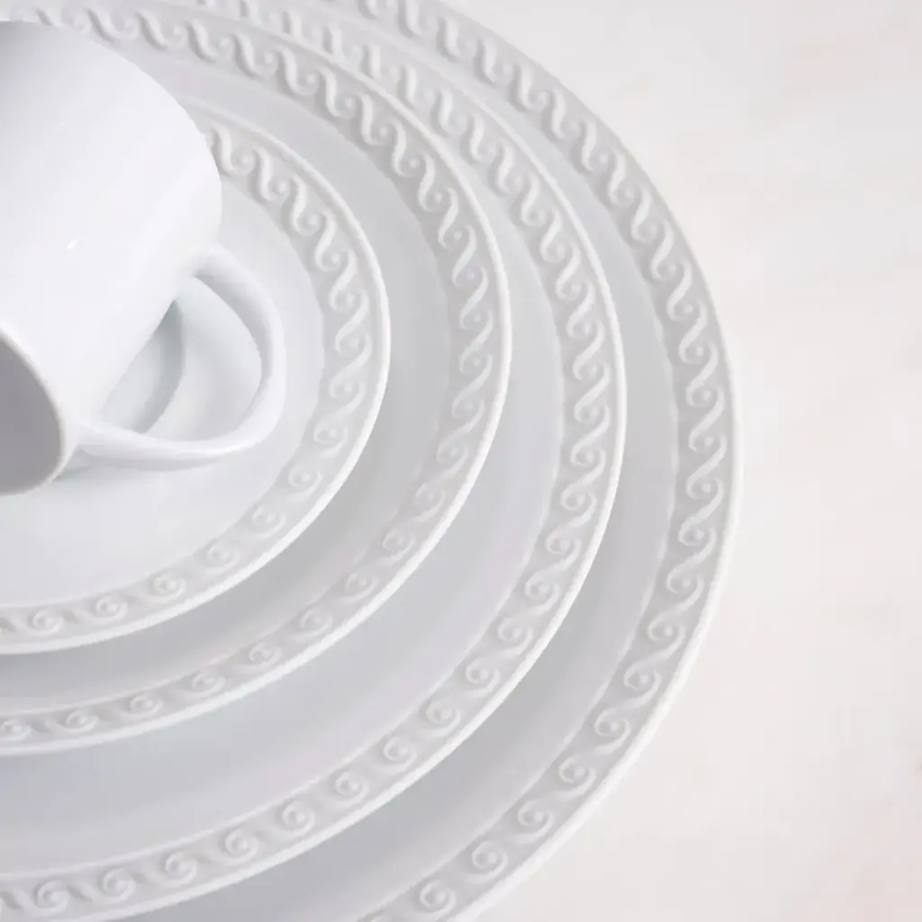 Inspired by the timeless beauty of the sea, this neo-classical motif is meticulously handcrafted from fine porcelain, sculpted in bisque to echo the gentle waves of the Mediterranean. Prior to founding L’Objet in 2004, Israeli-born Elad Yifrach was a successful designer in Beverly Hills. He was creating beautiful interiors, but he was frustrated by the limited options available in home accessories, so he set out to create something better. L’Objet’s collections are diverse, but they are almost always inspired by nature and architecture. Many of his exquisite serving pieces rest in a base of hand-crafted gold foliage, other pieces feature intricate design and beadwork, and some of the most striking objects actually look like miniature buildings. And despite the lux feel, much of the line is practical with just a touch of whimsy.