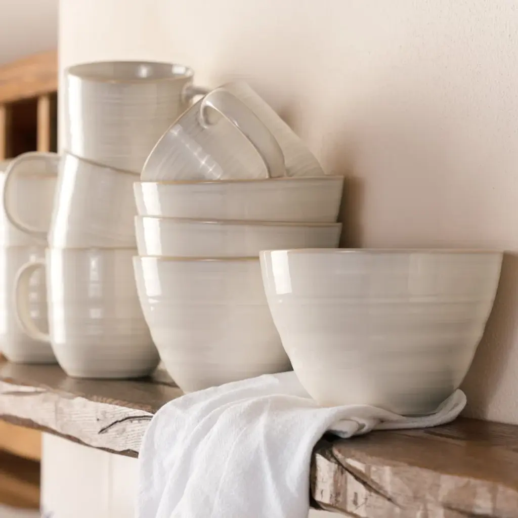 Hand-crafted, natural look and timeless coloring: With our Langridge cereal bowl in organic form and clear color, you can bring the modern country house style to your table setting. With a gray swirl spiraling through the lines of the piece and reactive glaze, Langridge also has fine details lining it to its core. The reactive glaze creates a special color gradient that makes it truly unique. The high-quality stoneware ensures that Langridge is the perfect tableware for everyday use. Microwave and dishwasher safe.