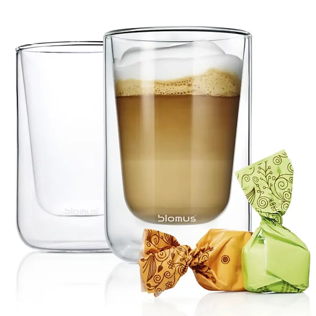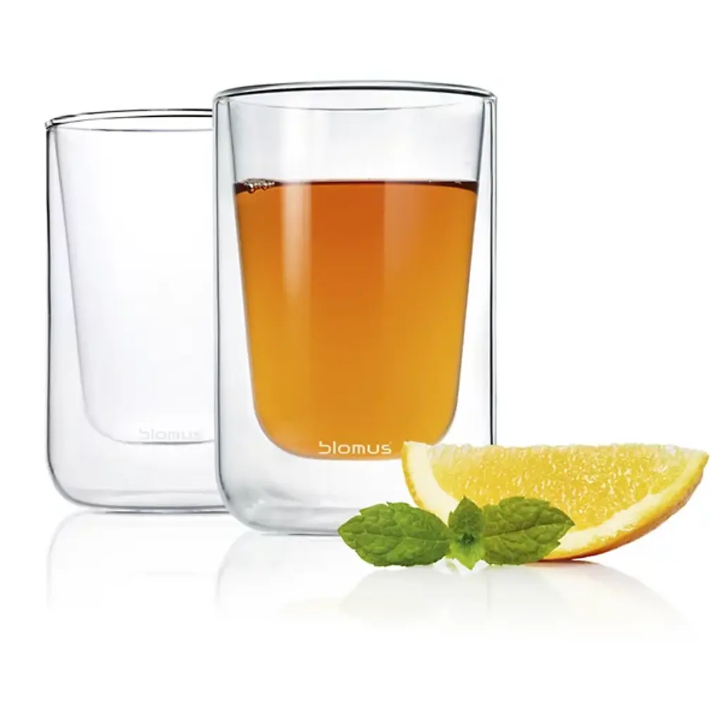 The Blomus NERO Set of 2 Insulated Cappuccino Tea Glasses let you enjoy your favorite hot or cold beverage without hurting your fingers. They are hand-blown out of clear glass into a double wall design. In addition to insulating the temperature of the contents from your fingers, the design is modern and elegant.