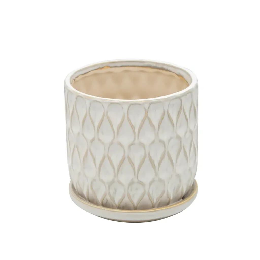 Neutral Textured Ceramic Saucer Planters Set Of 2