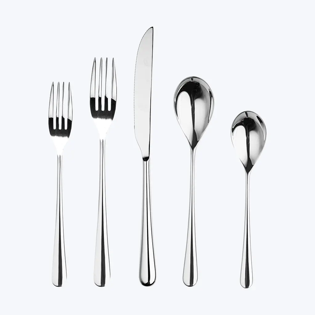 Discover Neve Flatware by Mepra. Inspired by the pristine quality of fresh snow, this sleek flatware series is defined by its lack of superfluous ornamentation. Clean, graceful lines make the Neve a study in refined minimalism. Ergonomically designed handles ensure a comfortable and secure grip. Crafted in Italy in 18/10 stainless steel. Available in a range of exquisite metallic hues.