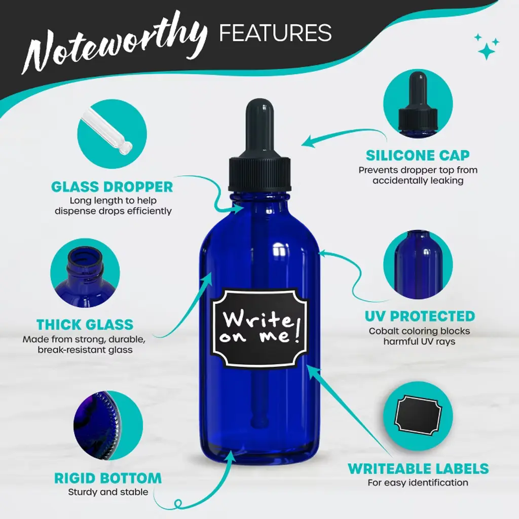 Nevlers 4 Oz Leakproof Blue Glass Dropper Bottles (Pack Of 24)