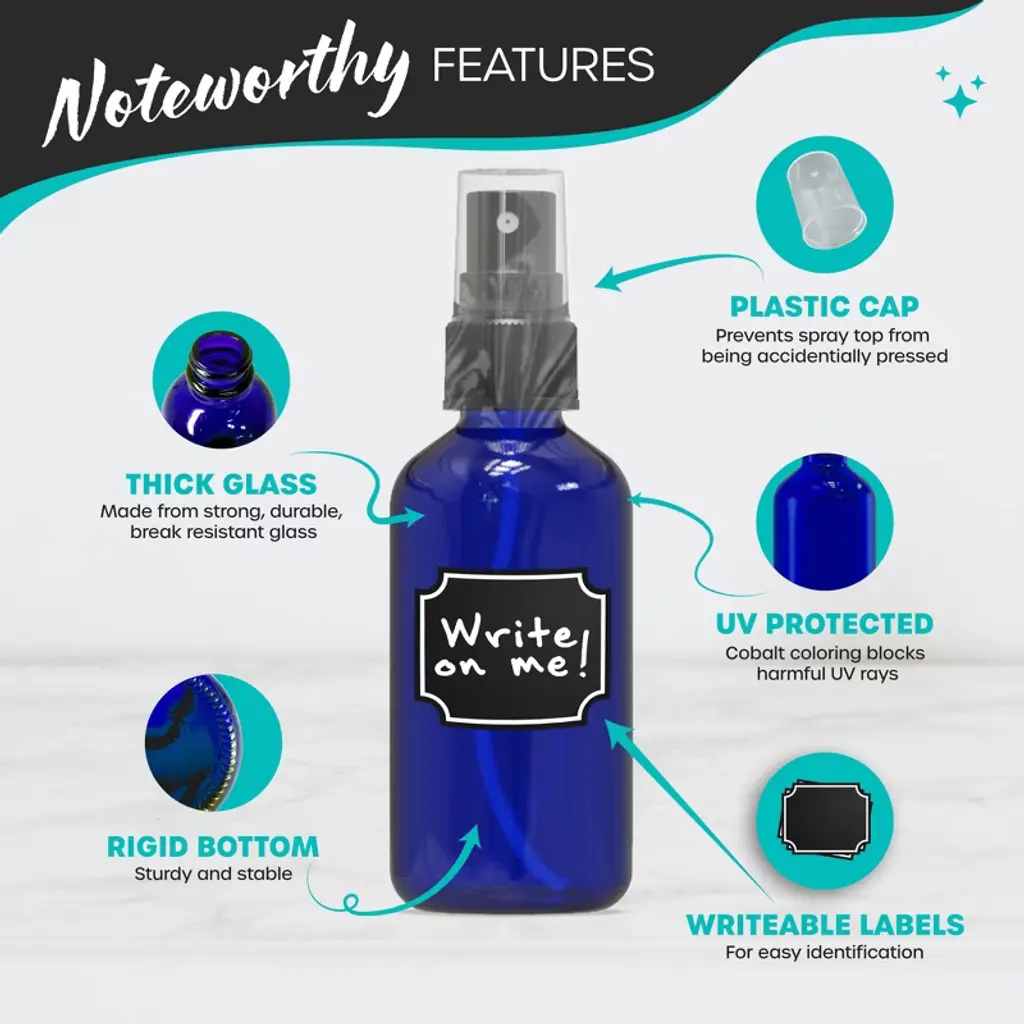 The Nevlers Cobalt Blue Glass Spray Bottle Set offers a better way to organize and travel with your favorite cosmetics, fragrances, cleansers or facial mists. Complete with a funnel, bottle brush, marker and labels, our set has everything you need to revamp your spritzing! The refillable small spray bottles provide both form and function as the beautiful blue glass protects against harmful UV rays. With leak-proof caps, you can take your favorite sprayable liquids wherever you go and make sure you’re always feeling refreshed!