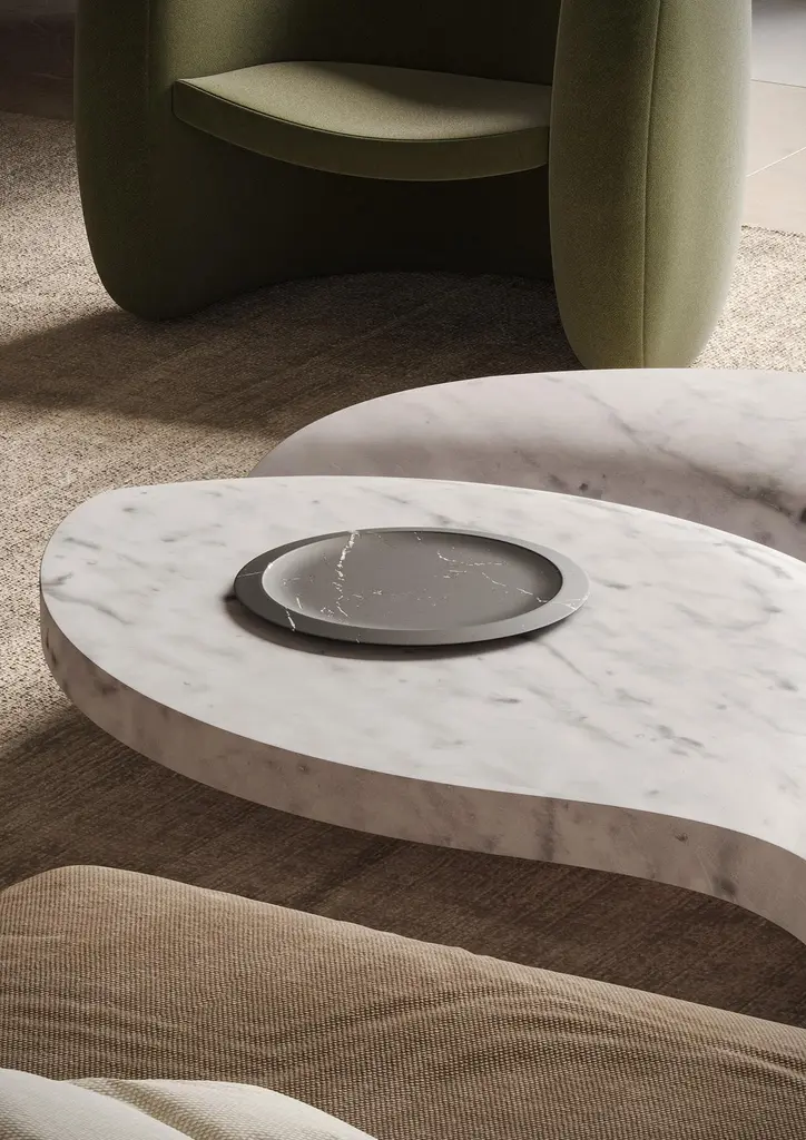 Sculptural, bright white, well-defined and multi-fold. Colominas has created a table service inspired by Angelo Mangiarotti’s soft lines, exalting the shape and structure of objects that characterize the exploration of one of the greatest pleasures afforded us, food.Size: 25 x 2 cm, smooth finishing, stain treatment compatible with food. Commercial name: Piatto Piano #1, Materia e Tavola collection by the Spanish designer Ivan Colominas. Available also in white Carrara and Michelangelo marble. Made in Italy.MMAIRO marble products are made of valuable materials and need to be handled with care. Any difference between similar objects and from their picture on the catalogue are due to the nature of the marble, and costitute an additional value of each piece, making it truly unique and special. The contact with acid or corrosive substances may adversely affect the surface. Hand washing is recommended. Special stain treatment, where necessary food compatible.