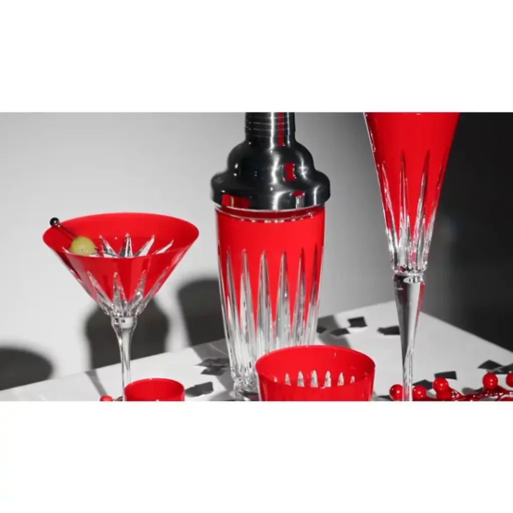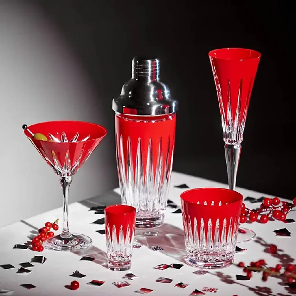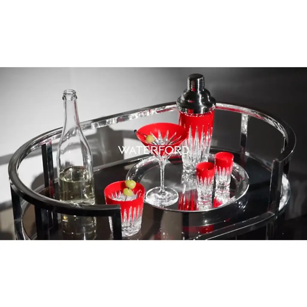The New Year Firework Shot Glasses, Set of 2 from Waterford features linear cuts against scarlet red crystal for celebratory toasts. This pair draws from the brand's Firework collection, where geometric patterns meet opaque glass to create a spirited aesthetic. The set arrives in signature Waterford packaging, offering a commemorative way to welcome each new year with those gathered around your table.