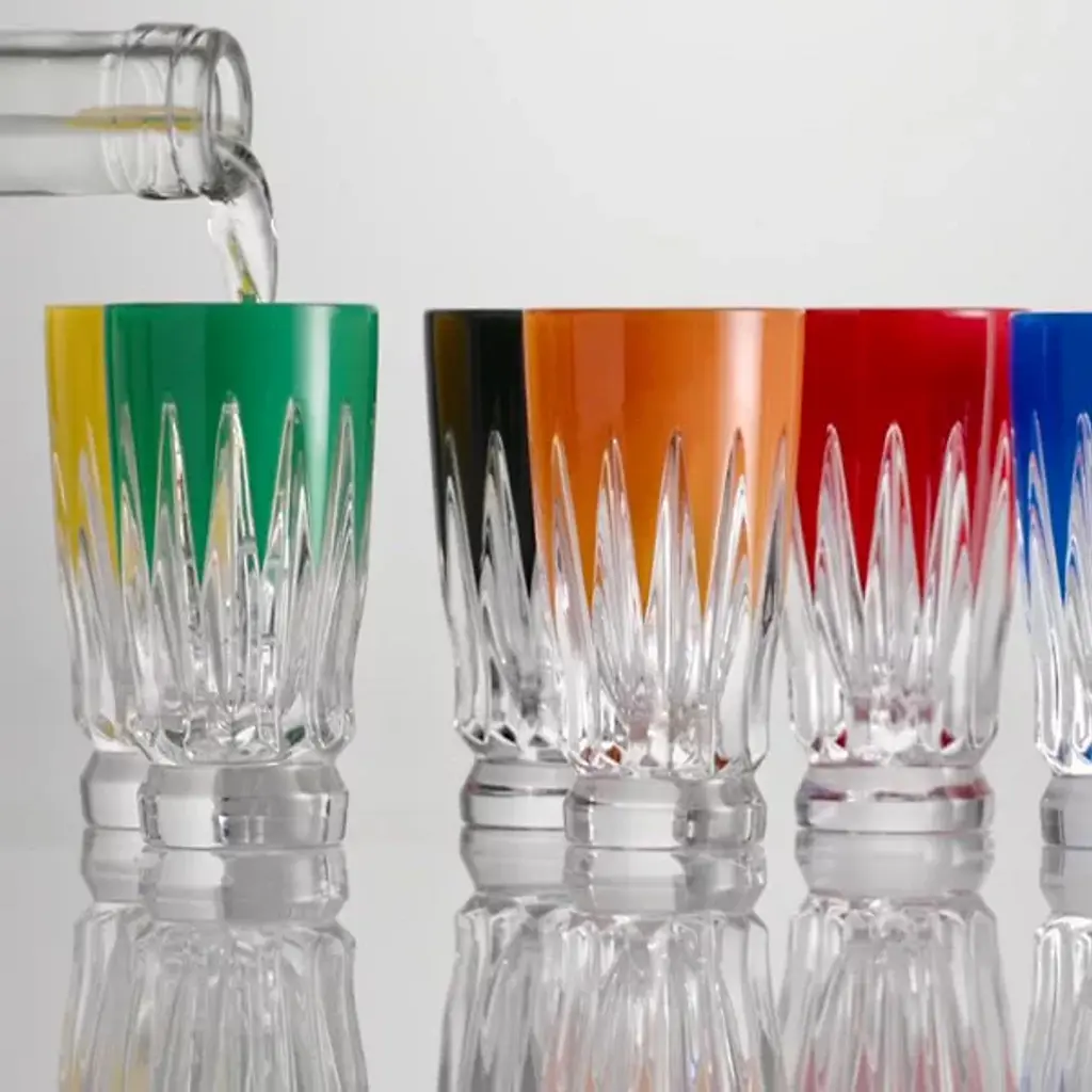 The New Year Firework Shot Glasses, Set of 6 from Waterford presents six pieces in varied party hues, each featuring the collection's signature linear cuts. The Firework range takes inspiration from midnight sky celebrations, translating bursts of light into geometric crystal patterns. This multicolored set creates a festive tableau for toasting, designed to brighten gatherings with those closest to you as another year begins.