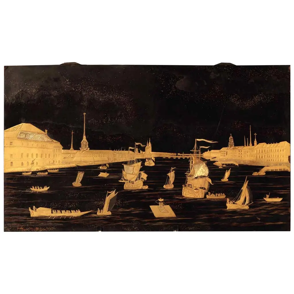 British native Charles Mottram engraved this scene of New York City circa 1855 and its harbor with fine horizontal lines adding depth and a crisp, precise quality to the print. The viewer can find Trinity Church, which still stands at the southern tip of Manhattan. Fulton steamships intersect with commercial sailboats in the bustling harbor. American-born John William Hill has painted a rendition of the sunset over New Jersey beyond the Hudson River. Microwave and Dishwasher safe. A favorite with brides, Mottahedeh specializes in luxurious patterns and unique, elegant shapes that are reproduced from china found in museums and historical societies. The patterns feature complex and vibrant colors, and hand-painted gold decoration. The pieces are surprisingly fresh and timely, and look wonderful in both contemporary and traditional dining rooms.